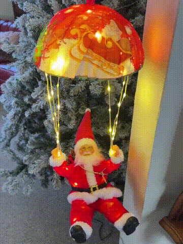 Attractive Santa Claus Parachute Lights: Adorable landing Santa Claus is dressed up in their stylish red winter wear complete with well-crafted hat, back with a gift bag, super cute and chic. There are exquisite patterns on the parachute cover: elk, santa, snow flower, cedar, art words Merry Christmas. Strong christmas elements create a fun and happy festival atmosphere